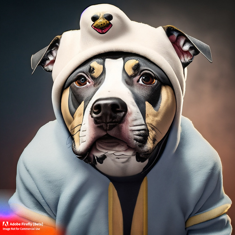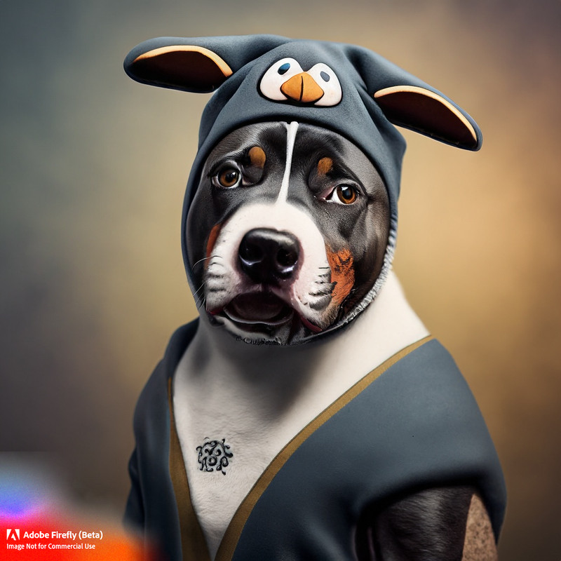 An american staffordshire terrier in an penguin suit wearing crocs!
