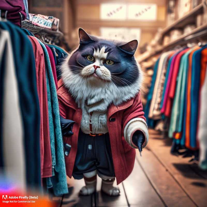 Sassy cat shopping at a thrift store
