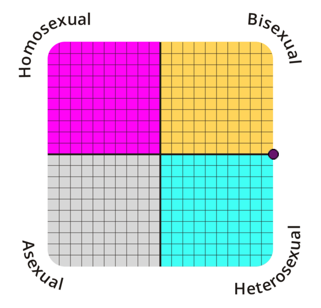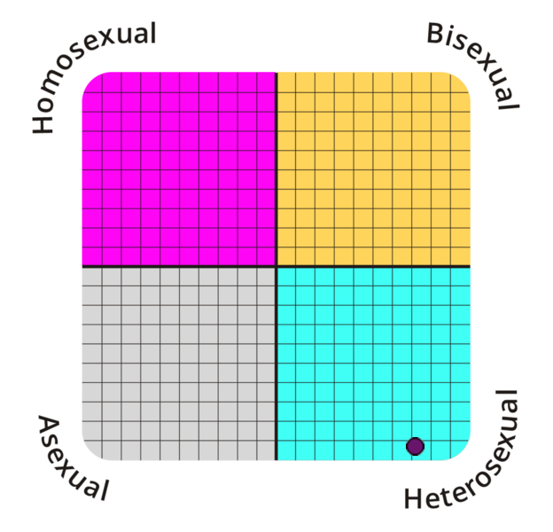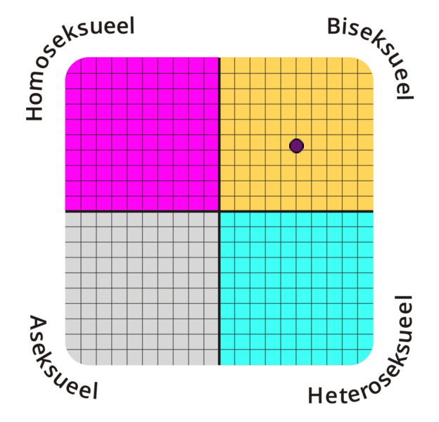 Je seksuele geaardheid is 89,3% heteroseksueel en 25% homoseksueel. Je zit dus in het heteroseksuele kwadrant.