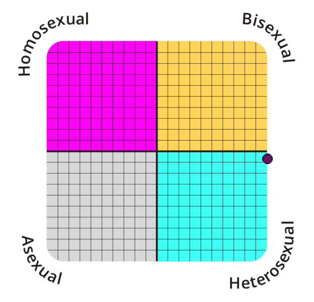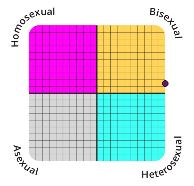 Your sexual orientation is 100% heterosexual, 60.7% homosexual, which places you in the bisexual quadrant