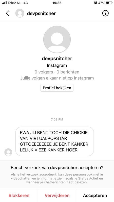 van het CT en Bloggersteam. Nu word ik random bericht door iemand op Instagram. Is dit een bekend probleem? Zie foto.