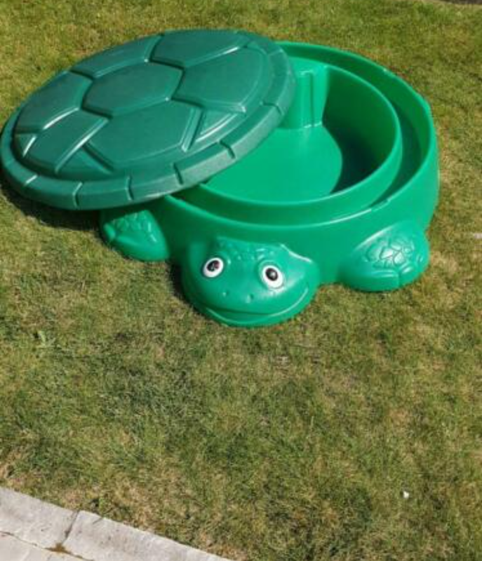 wij hadden een schelp een blauwe eentje met water en eentje met zand.