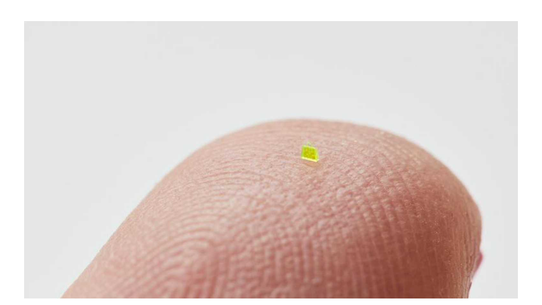 Met afmetingen van 657, bij 222, bij 700 micrometer, is de ’handtas’ kleiner dan een korrel zout.De tas is geïnspireerd op een model van modehuis Louis Vuitton.