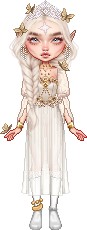 (onderdelen: a: 2 vleugels, b: 2 schoenen, c: top + rok+ voorgrond ding, d: kapsel + huid)